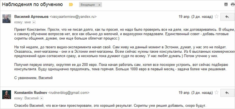 Вот лишь один их некоторых отзывов моих клиентов, доказывающих
